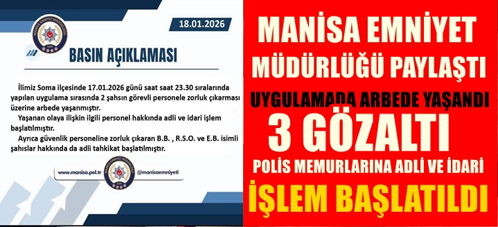 Konuyla ilgili sosyal medya hesaplarından resmi bir açıklama yapan Manisa İl Emniyet Müdürlüğü, yaşanan arbedenin ardından titiz bir inceleme başlatıldığını belirtti. Açıklamada şu ifadelere yer verildi: