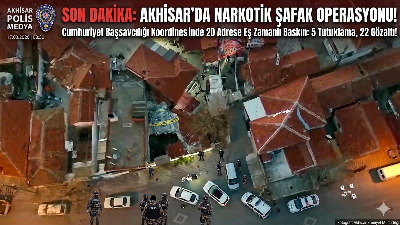 Akhisar Cumhuriyet Başsavcılığı koordinesinde yürütülen soruşturma kapsamında; Manisa İl Emniyet Müdürlüğü’ne bağlı Narkotik Suçlarla Mücadele, Akhisar İlçe Emniyet, Özel Harekat ve KOM Şube Müdürlüğü ekipleri dev bir operasyona imza attı. 16 Mart günü saat 07.00 sularında başlayan ve uyuşturucu madde ticareti yapan şahıslara yönelik gerçekleştirilen eş zamanlı baskınlarda, önceden belirlenen 20 ayrı adrese girildi.