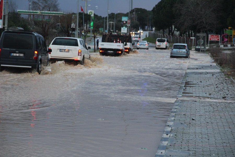 Manisa’da dün gece yağan yağmur sonrası Manisa’da farklı yerlerde su baskını olurken, Turgutlu yolu yoğun sudan dolayı trafiğe kapandı.