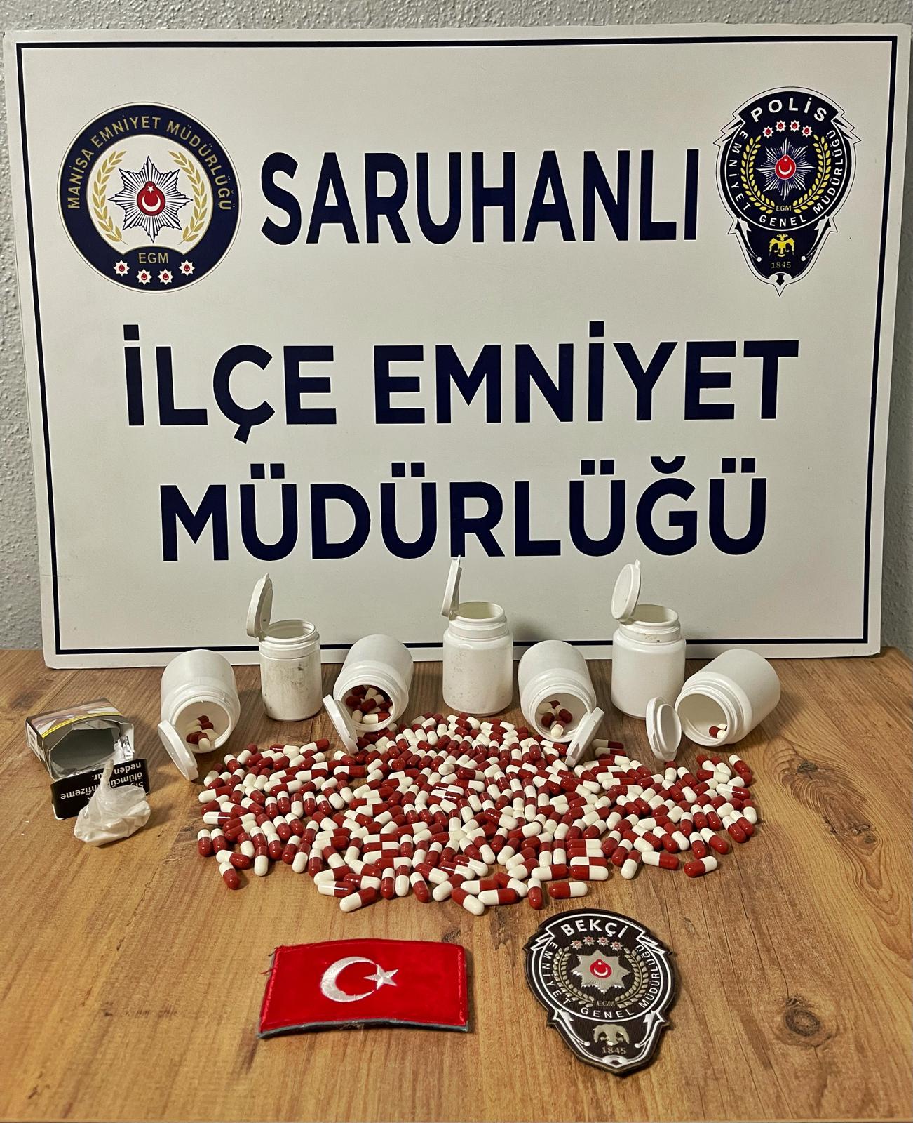 Şüphelinin yanındaki poşette yapılan incelemede; 298 adet sentetik hap ile şeffaf poşet içerisinde 3,12 gram toz uyuşturucu madde ele geçirildi.
