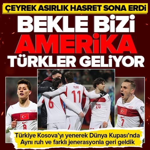 Kerem Aktürkoğlu'nun golüyle maçı 1-0 kazanan A Milli Futbol Takımı, 24 yıl sonra Dünya Kupası'na katılmaya hak kazandı.